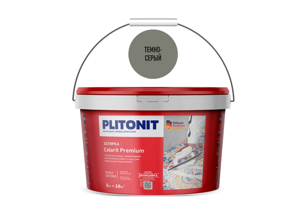 Затирка для швов Plitonit Colorit Premium биоцидная, темно-серая (2 кг)